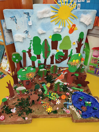 Using the children’s imagination and creativity, we worked as a team to build a forest model with chosen materials. Our goal was to capture some of the forest’s benefits in the diorama.